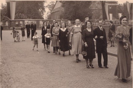 Geblieben sind die Erinnerungen an die damalige Zeit, es war eine schöne Zeit erzählte mir Adele Colaris als ich sie fragte wie es damals war als sie ihren Josef vor 60 Jahren geheiratet hat. Geheiratet wurde am 31. Juli 1950 in der Pfarre St. Castor zu Alsdorf. Wir gingen zu Fuß zur Kirche. Eine grosse Hochzeitsgesellschaft begleitete uns.