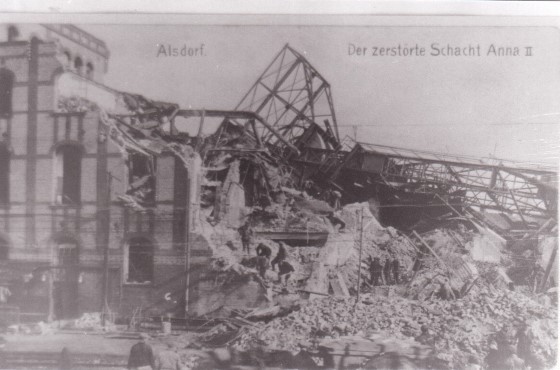 Diese Karte zeigt die Schäden, die die Explosion am 21.10.1930 obertätig verursachte. Das umgestürzte Schachgerüst gehörte zum Eduardschacht, nicht zum benachbarten Wilhelmschacht. Insgesamt waren 271 Tote zu beklagen.